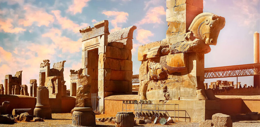 - تخت جمشید: بزرگترین و باشکوهترین بنای دوران هخامنشیان، تخت جمشید است. این مجموعه کاخی، نماد قدرت و شکوه امپراتوری هخامنشیان است.